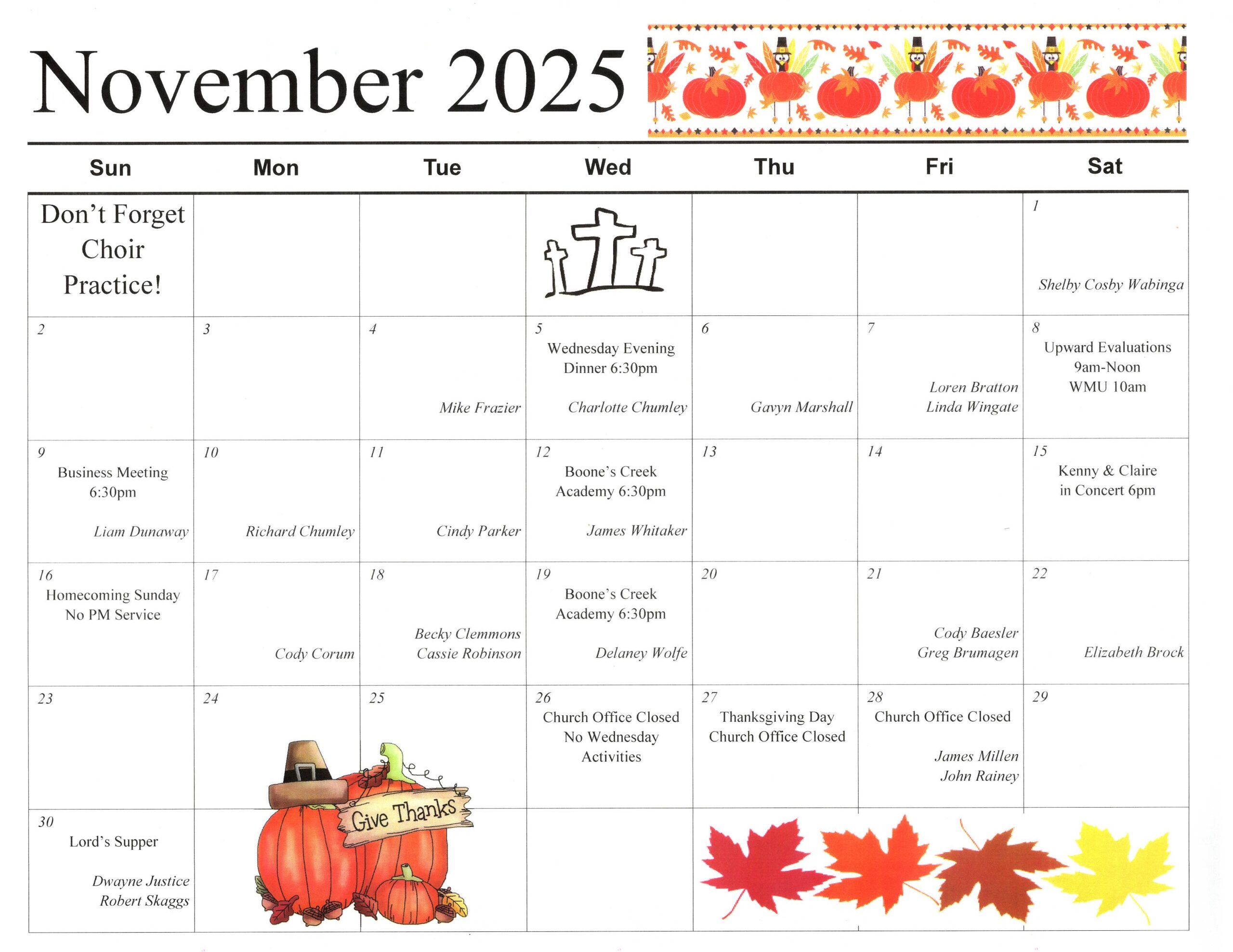Our next regularly scheduled business meeting will be November 9, 2025 during our 6:30 pm worship service.